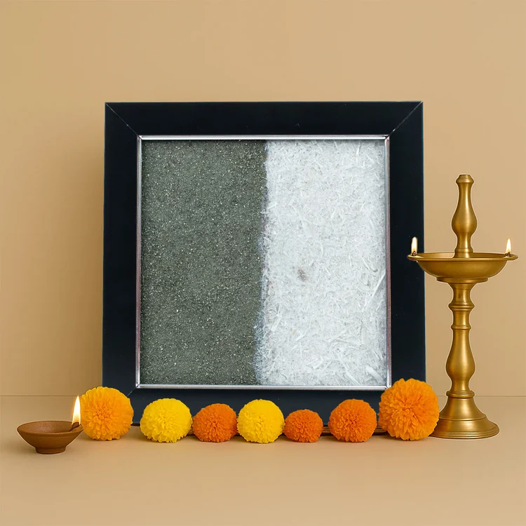 The Dhan Varsha Frame with Peru Pyrite and Selenite Dust is a beautiful and powerful charm for wealth, positivity, and protection. Pyrite, known as the “stone of money,” attracts wealth, business growth, and good fortune. Selenite is a pure white crystal that brings peace, clears negative energy, and keeps the mind calm. Together, Pyrite and Selenite create the perfect balance of prosperity and harmony, making this frame ideal for homes, offices, or shops to invite success, protection, and good energy.