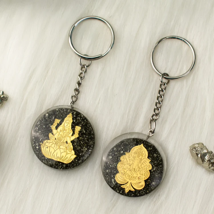 Lakshmi-Ganesh Ji Pyrite Keychain Combo