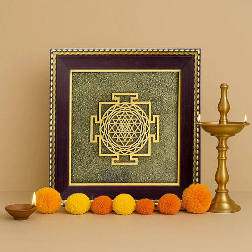 Shree Yantra on Raw Pyrite Frame